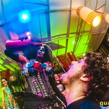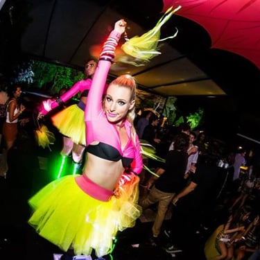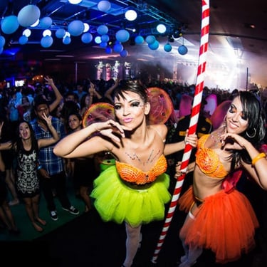 Para os amantes da dança, temos uma equipe de dançarinos profissionais que vão animar a pista de dança com coreografias incríveis. E para os que gostam de algo mais ousado, oferecemos artistas circenses, como acrobatas, malabaristas, aéreos em tecido e lira, pirofagistas e pernas de pau.
