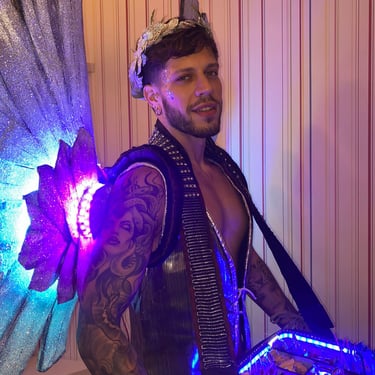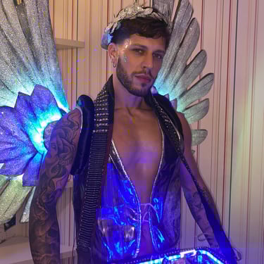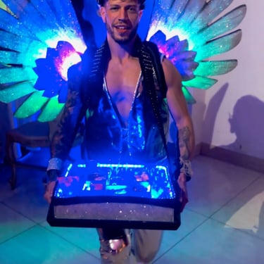 Imagine este belo personagem caminhando entre os convidados, irradiando luz e encanto por onde passa. O Anjo Baleiro é uma figura cativante, vestido com um figurino angelical e asas de LED que dão um toque de modernidade e brilho à sua festa. Com seu visual único, o Anjo Baleiro não apenas traz um toque de beleza, mas também cria uma atmosfera mágica que envolve todos os presentes.