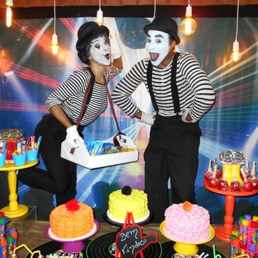Com os nossos serviços de mímicos, você pode adicionar um toque de magia e diversão à sua festa ou evento especial. Nossos mímicos são artistas altamente treinados e formados pela escola de Circo. Usam gestos, expressões faciais e movimentos corporais para contar histórias, criar cenas e interagir com o público.